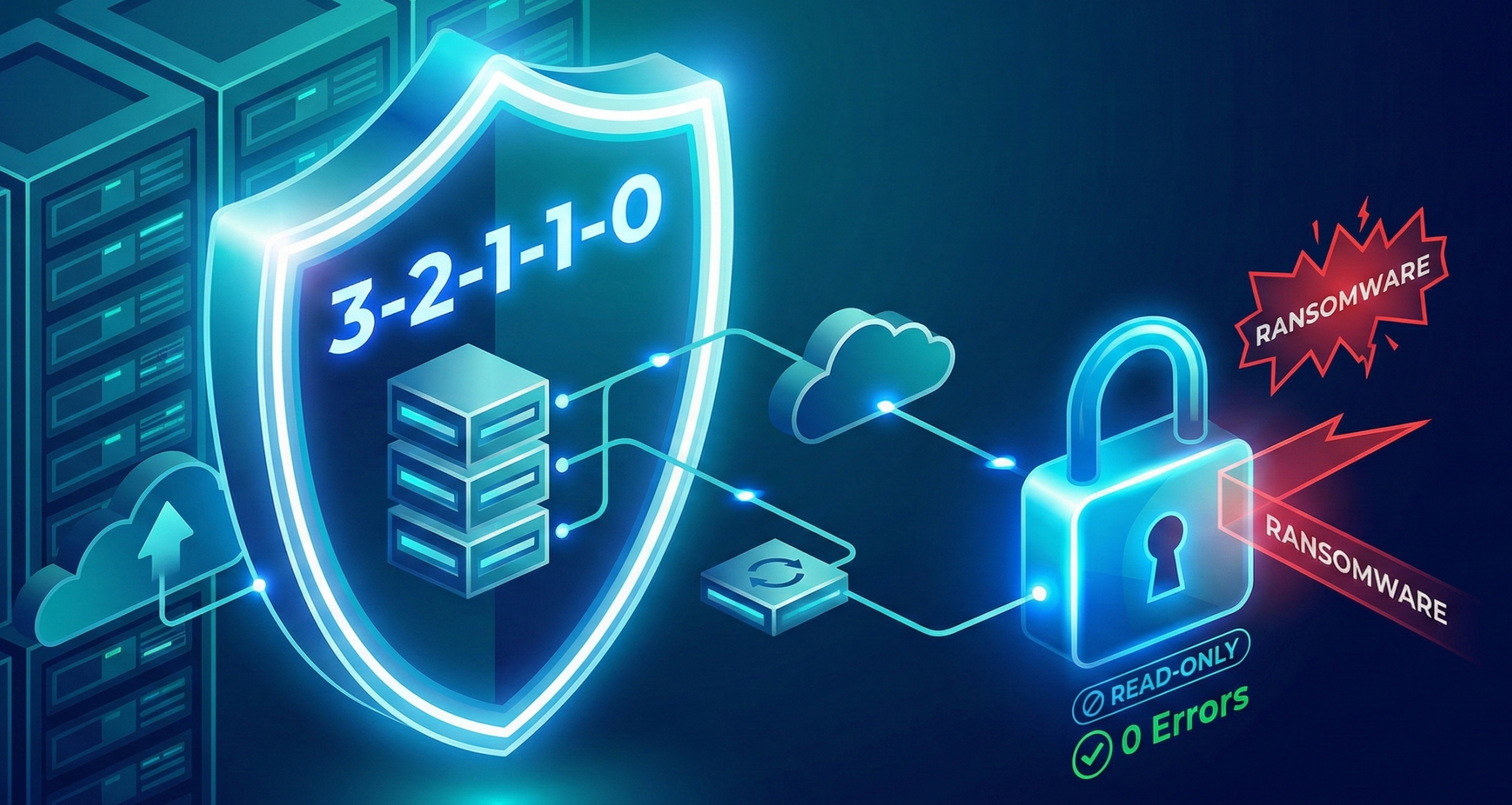 The old “3-2-1” backup rule is no longer enough to stop modern ransomware. We introduce the new 3-2-1-1-0 Standard—the only data backup solution that uses “Immutable” copies to guarantee zero errors and total recovery.